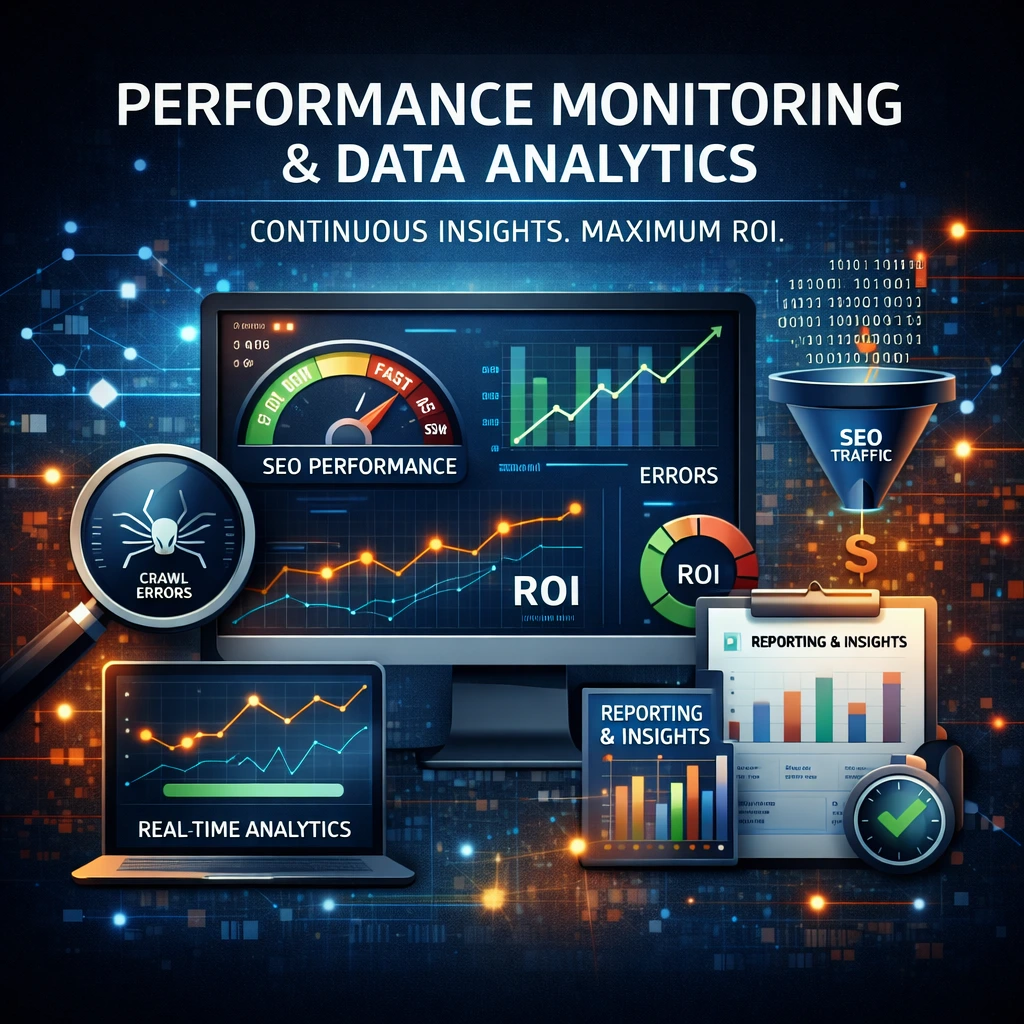 SEO and performance are dynamic processes, not one-time fixes. We deploy continuous monitoring systems to track site health, crawl errors, and speed fluctuations in real-time. By utilizing data-driven analytics, we provide actionable insights and transparent reporting, ensuring your digital ecosystem continues to evolve and deliver a high Return on Investment (ROI).