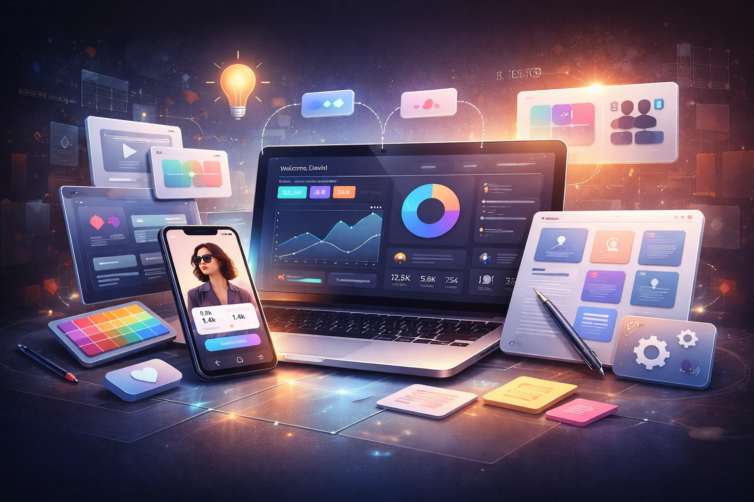 A brand’s digital presence draws its strength not only from colors but also from the trust it inspires and the seamless experience it delivers. With our Visual Design & UX Strategy service, we combine professional UI (User Interface Design) aesthetics with data-driven UX (User Experience) strategies. We transform every detail, from your logo to your most complex interface architecture, into a strategic work of art that reflects your brand’s character and guides the user toward their goal. We bring technical excellence together with an aesthetic spirit.